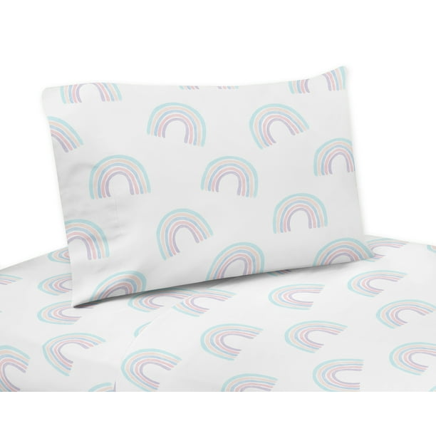 Sweet Jojo Designs Pastel Rainbow Queen Sheet Set 4 Piece Set Blush Pink Purple Teal Blue And White Walmart Com Walmart Com