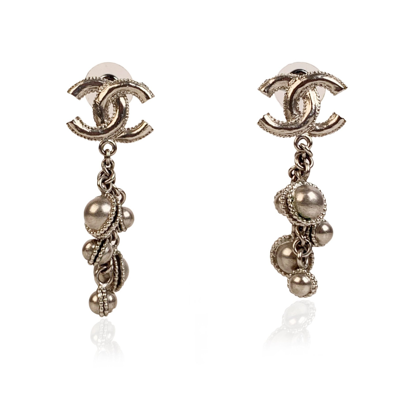 Chanel Silver Metal Cc Logo And Sphere Charms Dangle Earrings Leprix