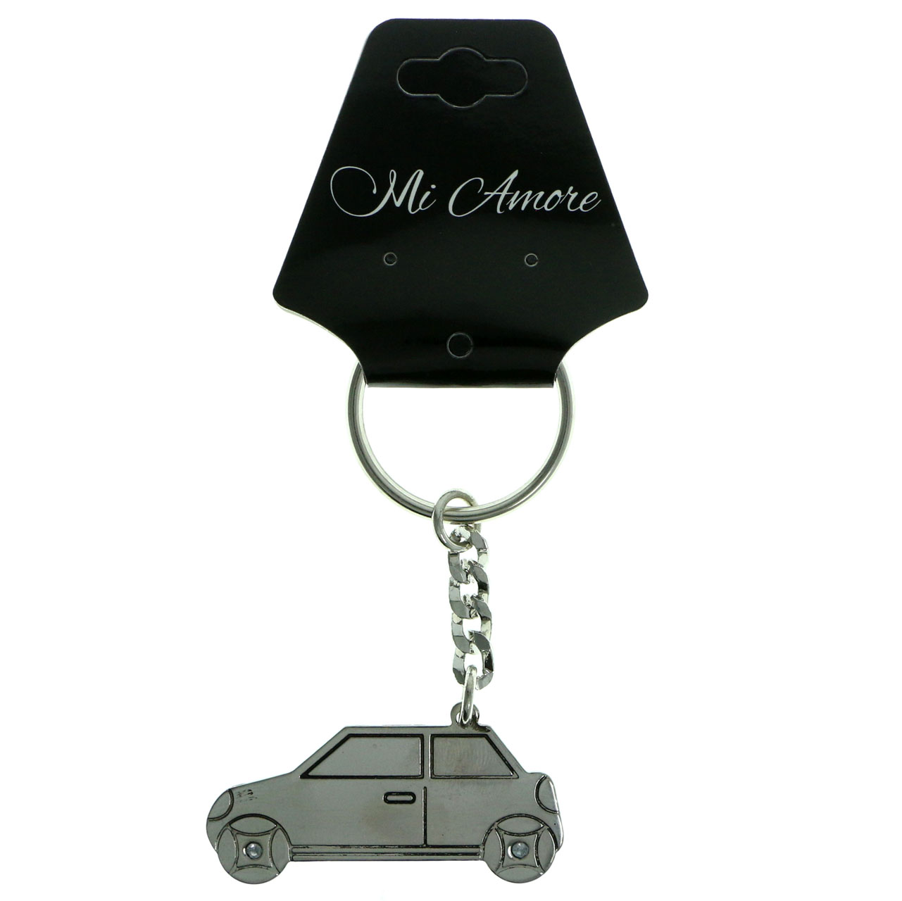 Mi Amore Car Auto Shaped Split Ring Keychain Silver Tone