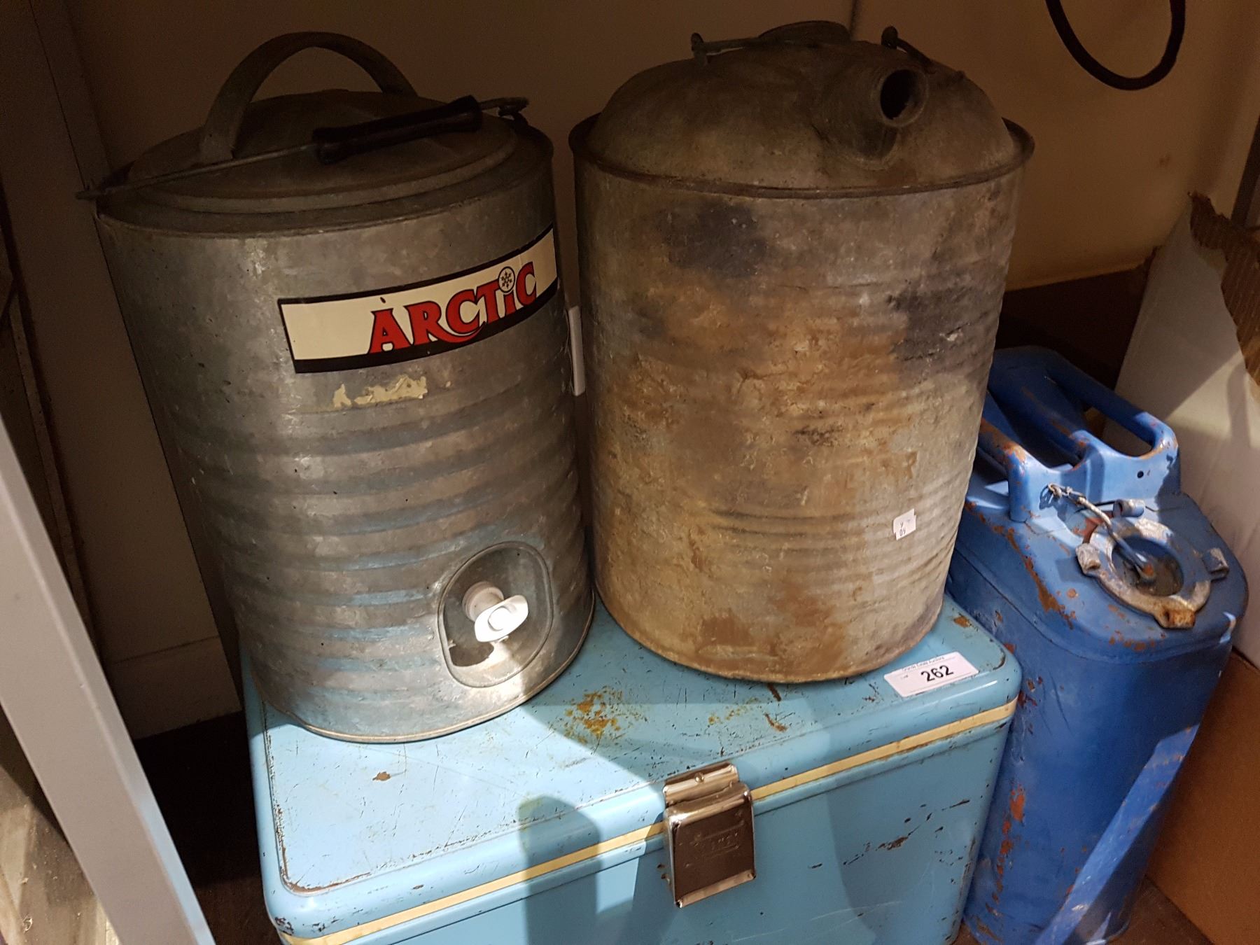 Lot Detail Vintage Galvanized Milk Cans And Water Cooler