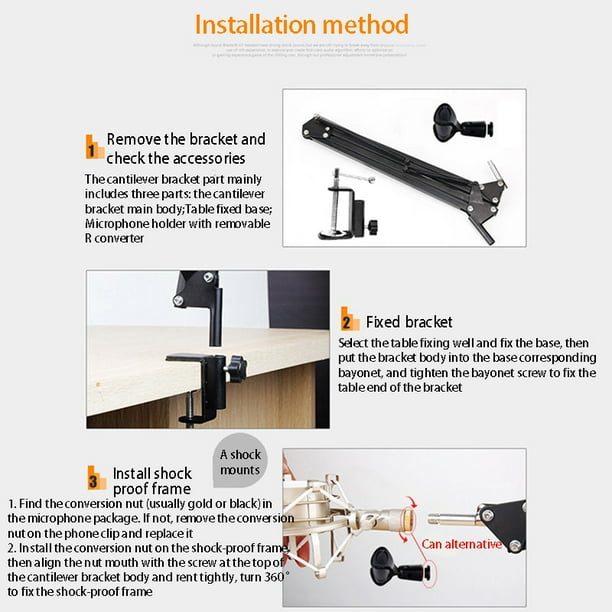 Buy Removable Cantilever Stand Adjustable Wall Hanging Microphone Suspension Arm Clip Holder Table Mounting Clamp Micr