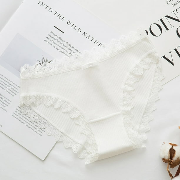 Anself Women Solid Color Panties Breathable Thread Cotton Mid Rise Lace Trim Bowknot Comfortable Briefs Underwear Lingerie Walmart Com Walmart Com