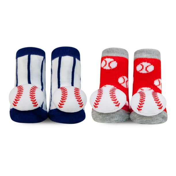 Waddle And Friends Waddle And Friends 2 Pack Designer Boys Baby Socks Mlb Baseball Newborn 0 12 Months Baby Slippers 2 Pairs Red White And Blue Major League Striped Sensory Foot Finder