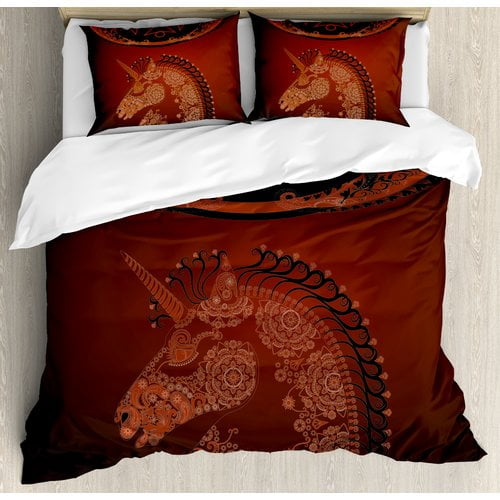 Ambesonne Unicorn Home And Kids Ethnic Unicorn Profile With Asian Embellish Lace Mandala Details Decor Duvet Cover Set Walmart Com Walmart Com