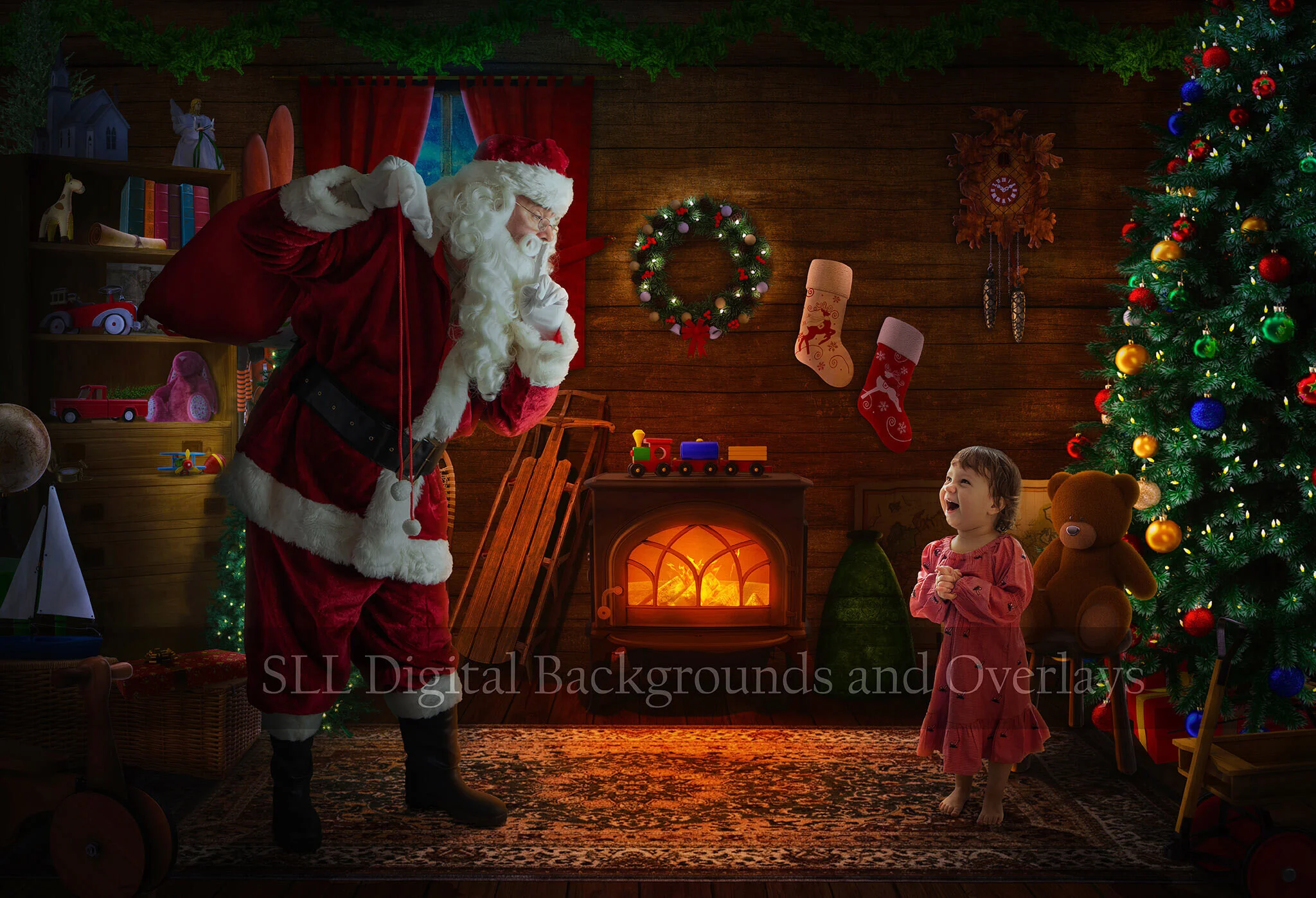 Santa On The Shelf Christmas Newborn Digital Backdrop Newborn Digital Backdrop