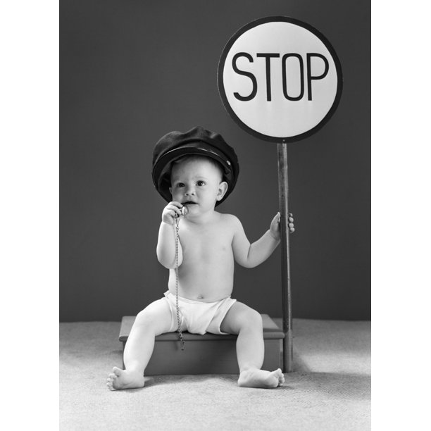 1940s Baby Boy Holding Stop Sign Traffic Whistle Poster Print By Vintage Collection Walmart Com Walmart Com