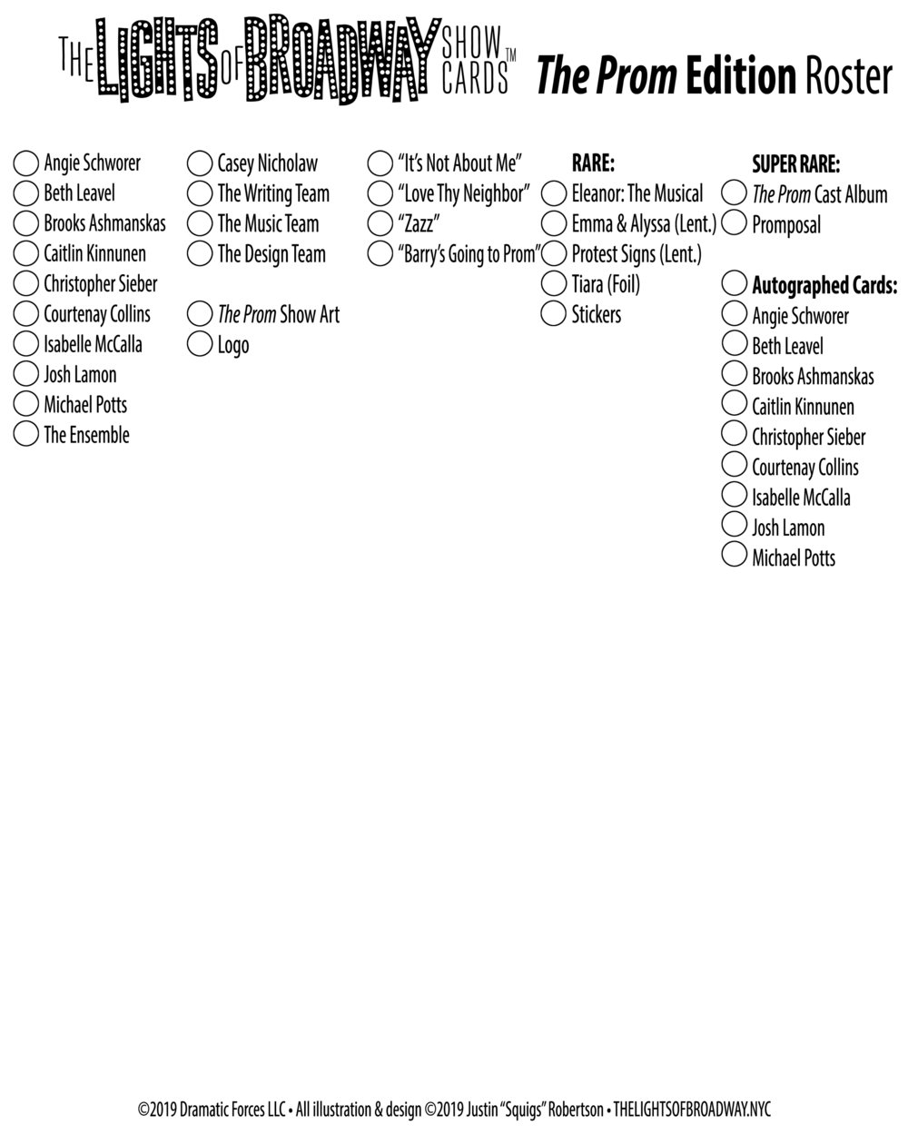 The Prom Edition Free Checklist The Lights Of Broadway Show Cards