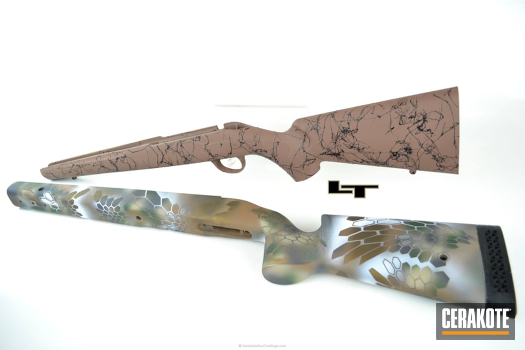 Customized Rifle Stocks Finished In A Splatter And Kryptek Pattern By Mac Cerakote