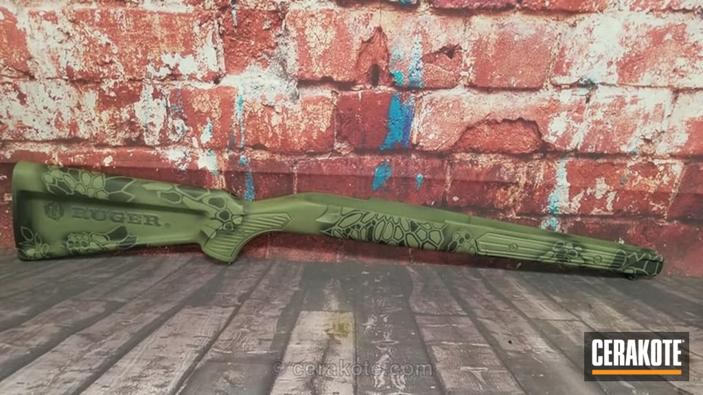 Ruger Rifle Stock In A Green And Black Kryptek Finish By Tammi Janey Cerakote