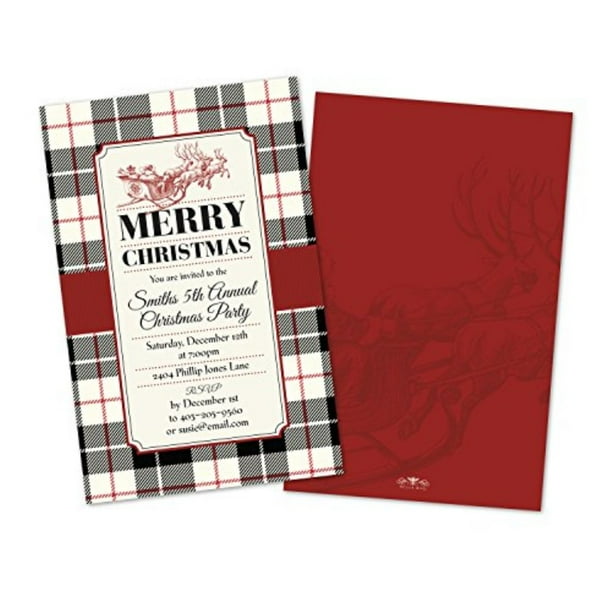 Vintage Santa Plaid Personalized Christmas Party Invitations Walmart Com Walmart Com