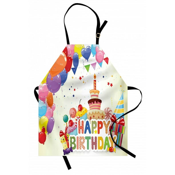 Birthday Apron Heart Shaped Funny Balloons Cupcakes Candies Presents And Party Hats Occasion Unisex Kitchen Bib Apron With Adjustable Neck For Cooking Baking Gardening Multicolor By Ambesonne Walmart Com Walmart Com