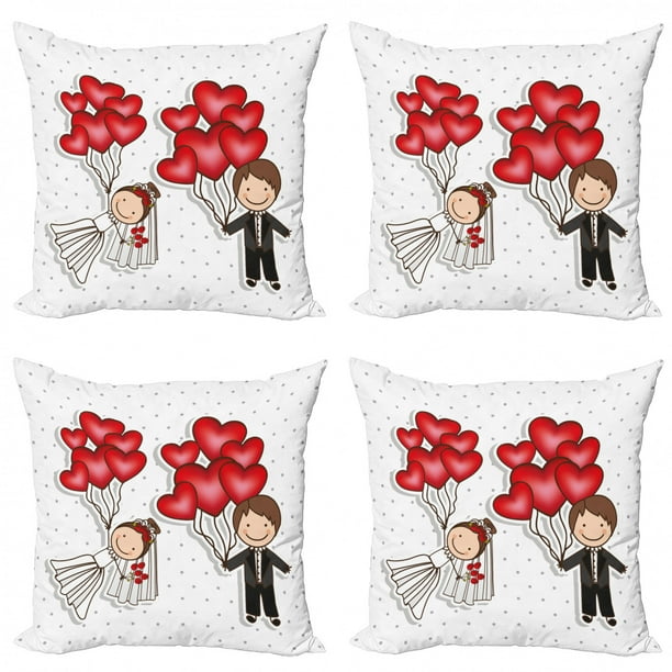 Wedding Throw Pillow Cushion Case Pack Of 4 Funny Cartoon Style Newlyweds With Heart Shaped Balloons Dots Happiness Modern Accent Double Sided Print 4 Sizes Red White Black By Ambesonne Walmart Com