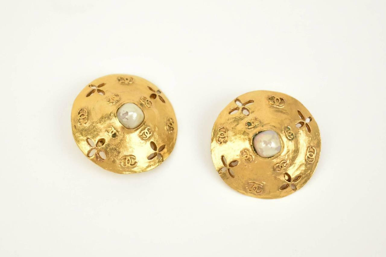 Authentic Chanel Vintage Gold Metal Round Clip On Earrings Cc Logos Ebay