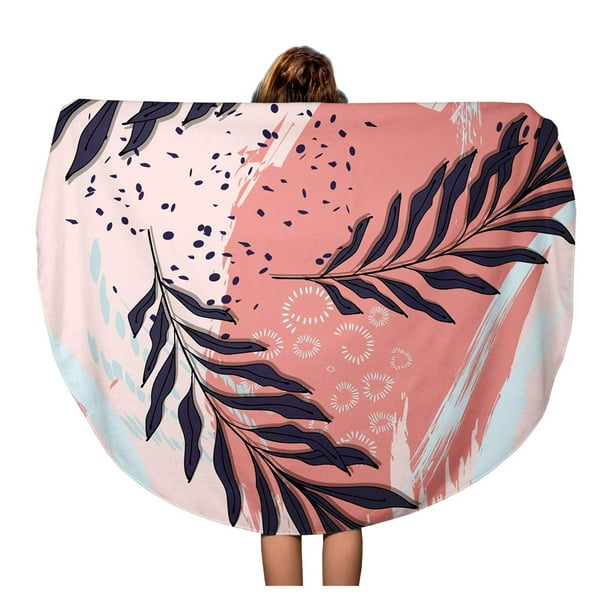 Laddka 60 Inch Round Beach Towel Blanket Pastel Pink Blue Coral Brush Stroke Pattern Tropical Leaves Travel Circle Circular Towels Mat Tapestry Beach Throw Walmart Com Walmart Com