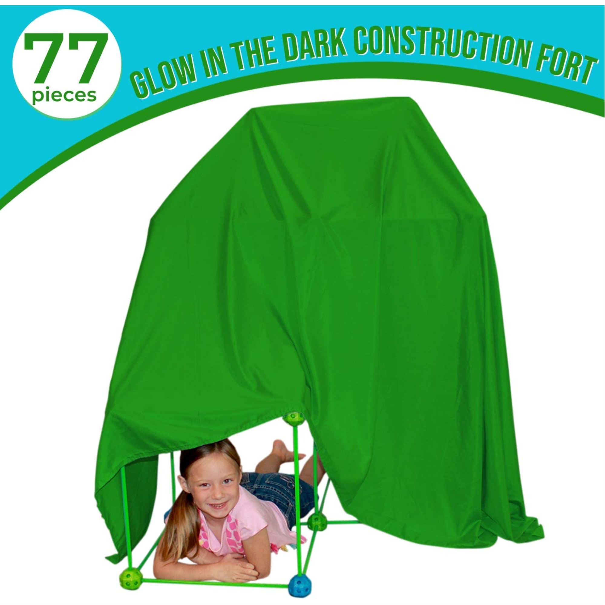 Funphix 77 Pc Fort Building Kit With Glow In The Dark Sticks Green Sheet Fun Construction Toy For Age 5 Creative Play Encourages Imagination Teamwork Blue And Green
