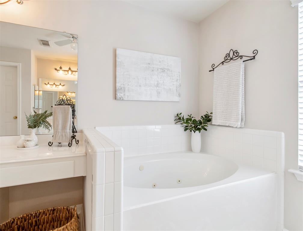 White Quartz Slab On Drop In Bathtub Transitional Bathroom