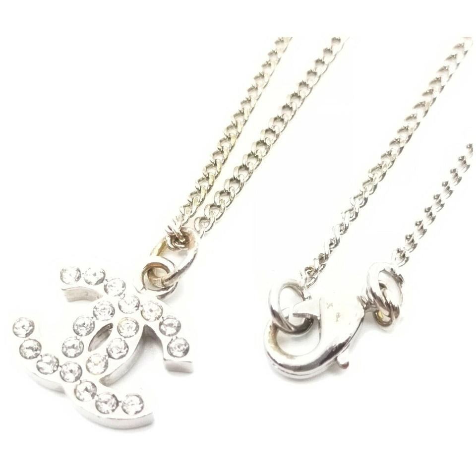 Chanel Pendant Necklace Cc Logo Silver Rhinestone 10v 85 Art Japan Export