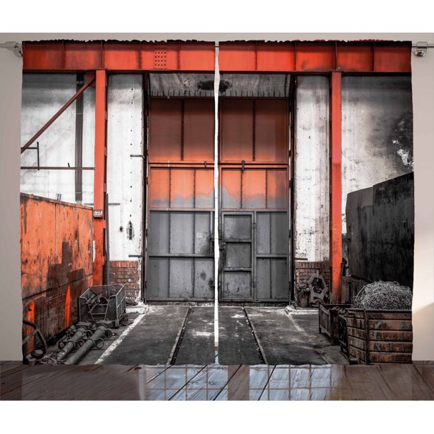 Industrial Decor Curtains 2 Panels Set Worn Out Metal Gate Entrance Grungy Structure Rustic Architecture Window Drapes For Living Room Bedroom 108w X 84l Inches Orange Grey White By Ambesonne Walmart Com
