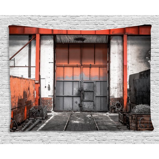 Industrial Decor Tapestry Worn Out Metal Gate Entrance Grungy Structure Rustic Architecture Wall Hanging For Bedroom Living Room Dorm Decor 80w X 60l Inches Orange Grey White By Ambesonne Walmart Com