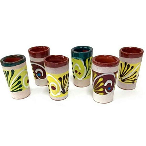Amazon Com Made In Mexico Mexican Hand Painted Barro Clay Tequila Shots Glasses Set Of 6 Assorted Vaso Tequilero Shot Glasses