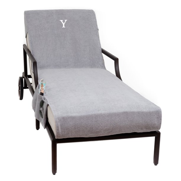 Authentic Turkish Cotton Monogrammed Grey Towel Cover With Pocket For Standard Size Chaise Lounge Chair Walmart Com Walmart Com