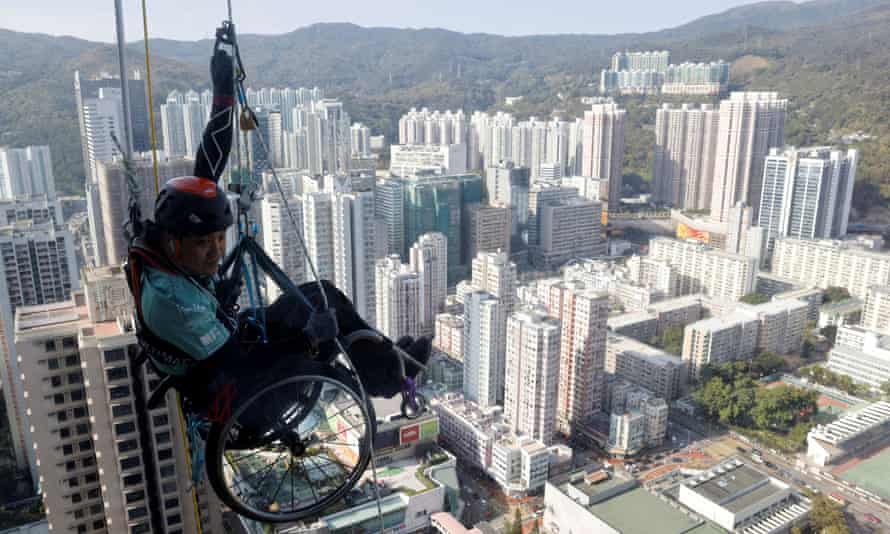 Wheelchair Climber Hauls Himself 250 Metres Up Hong Kong Skyscraper For Charity Hong Kong The Guardian