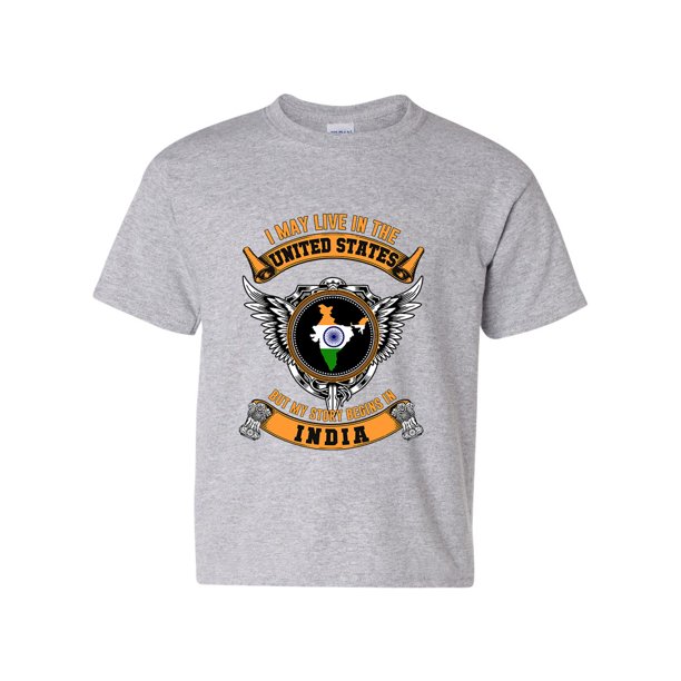 I May Live In Us But My Story Begins In India Patriotic Dt Youth Kids T Shirt Tee Walmart Com Walmart Com