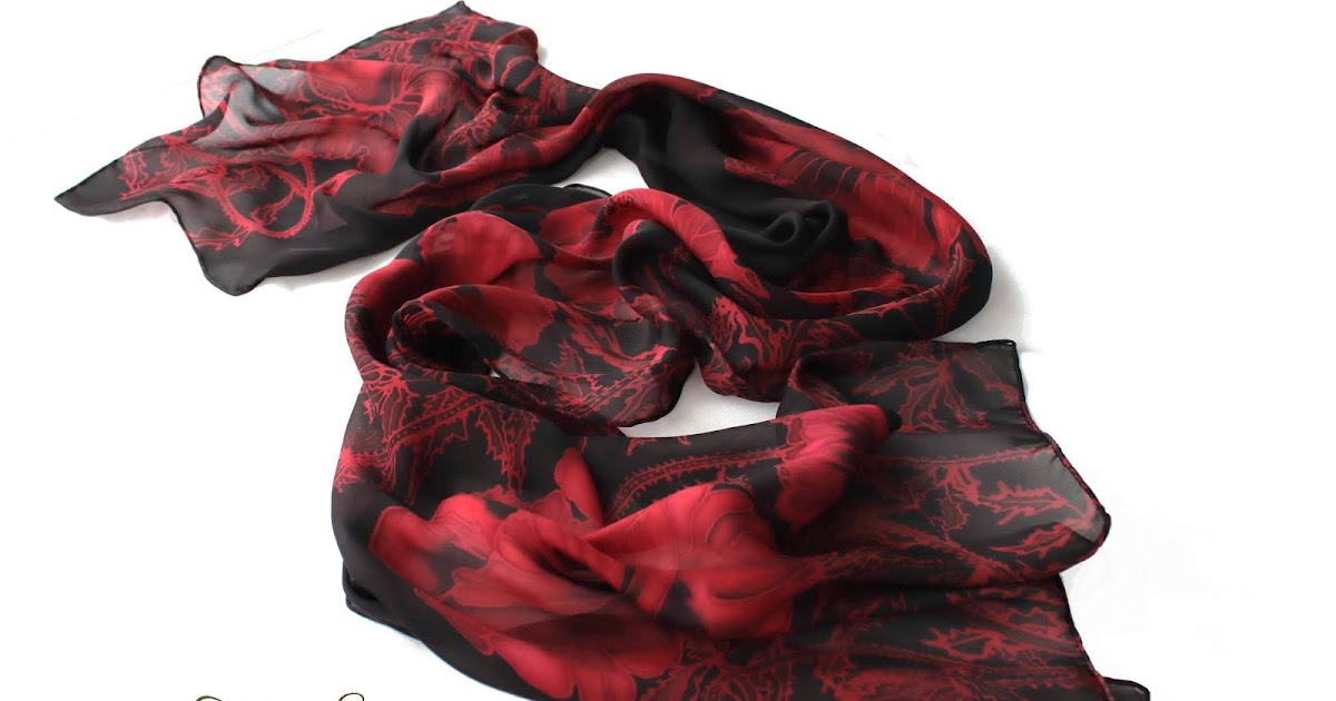 Silk Scarf See Through Chiffon Handpainted Silk Scarf Red Etsy