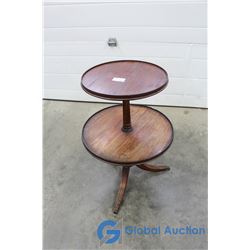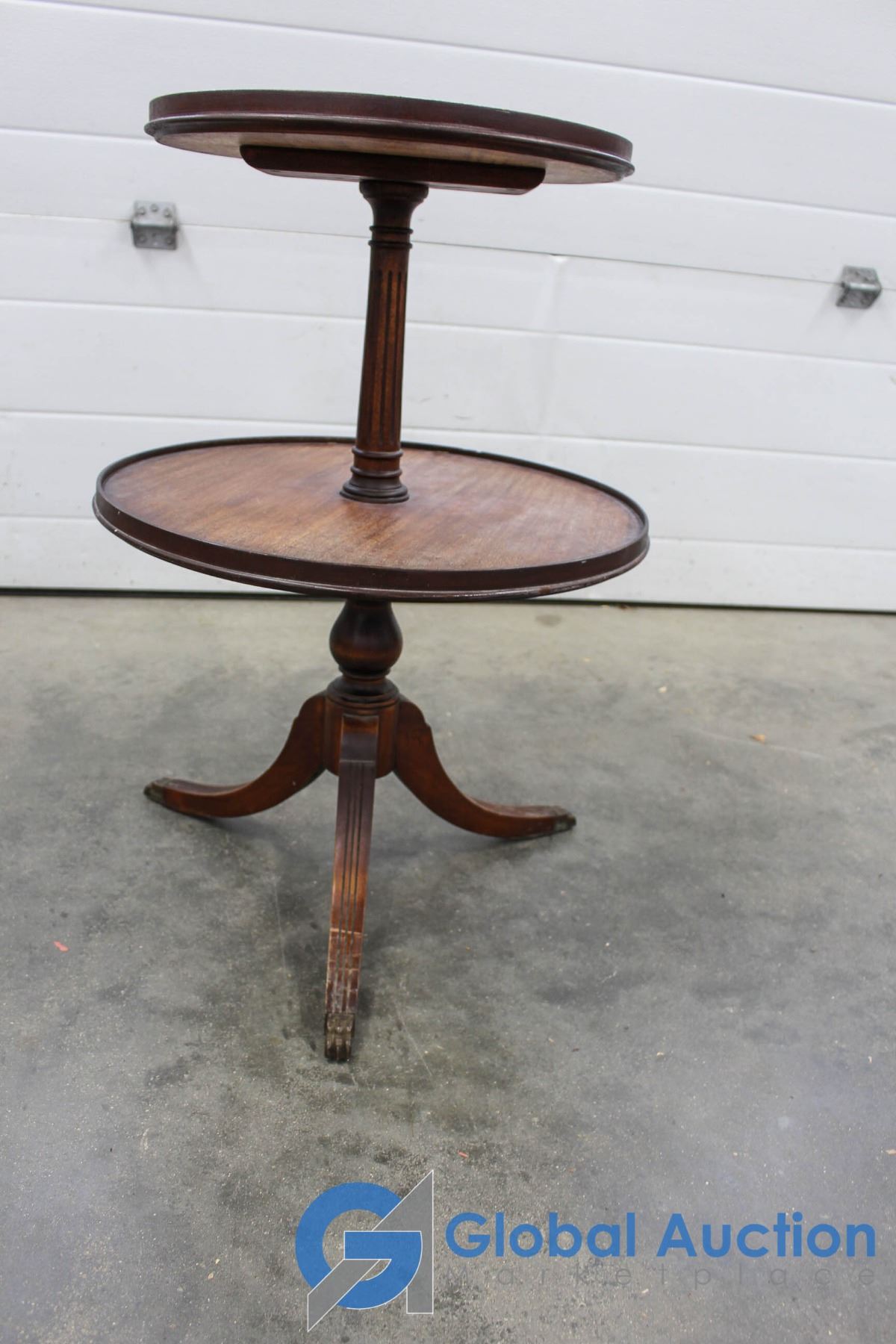 2 Tier Round Wooden Knick Knack Table W Brass Feet