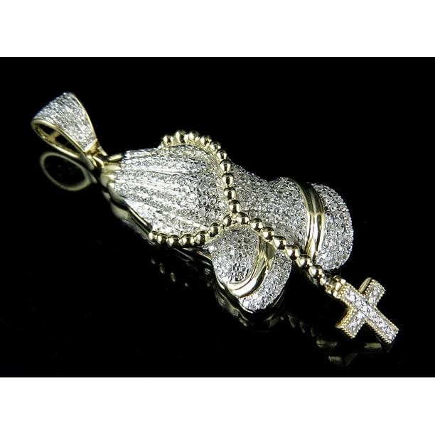 Jewelry Unlimited Mens 10k Yellow Gold Rosary Praying Hands Cross Genuine Diamond Pendant 1 0ct 2 Walmart Com Walmart Com