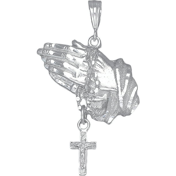 Ejewelryplus Sterling Silver Praying Hands With Rosary Cross Pendant Necklace Diamond Cut Finish And 24 Inch Chain Walmart Com Walmart Com