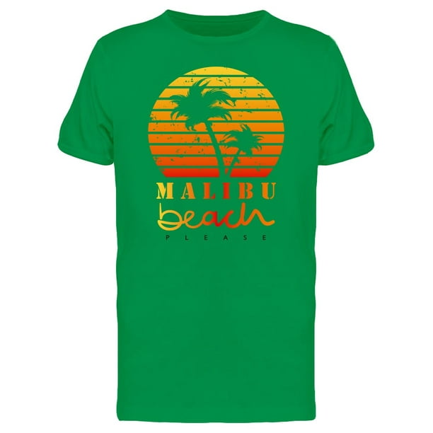 Smartprints Malibu Beach Text And Palm Trees With Sunset Tee Men S Image By Shutters Walmart Com Walmart Com