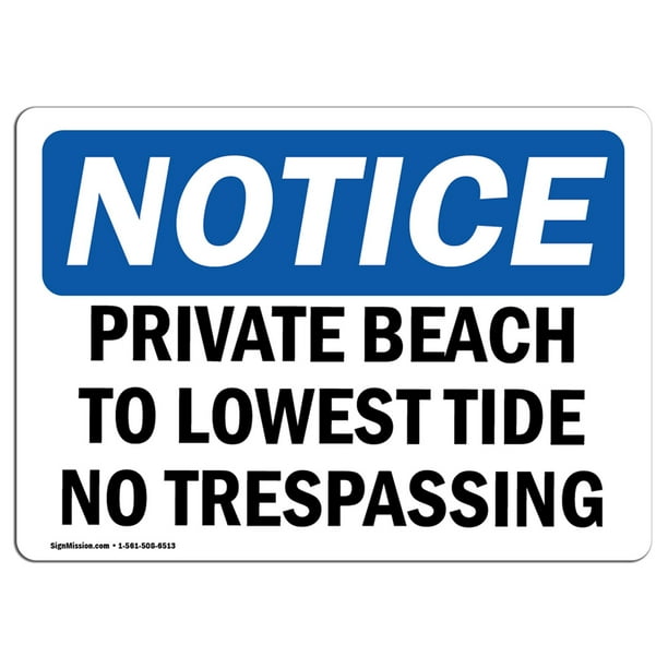 Osha Notice Private Beach To Lowest Tide No Trespassing Sign Heavy Duty Walmart Com Walmart Com