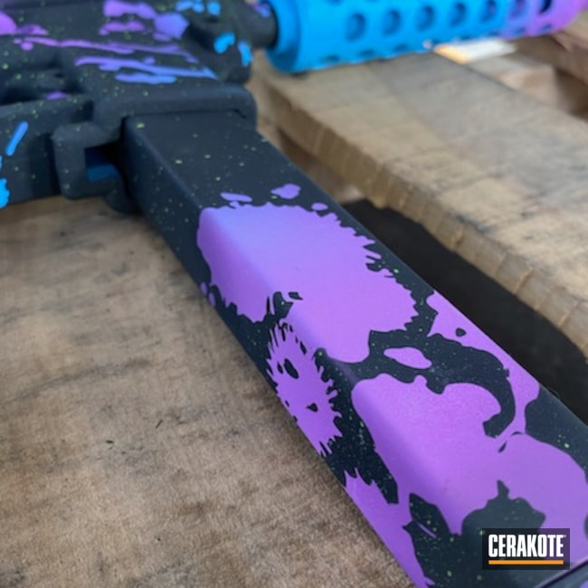 Paint Splatter Tec 9 Cerakoted Using Sig Pink Blue Raspberry And Zombie Green Cerakote