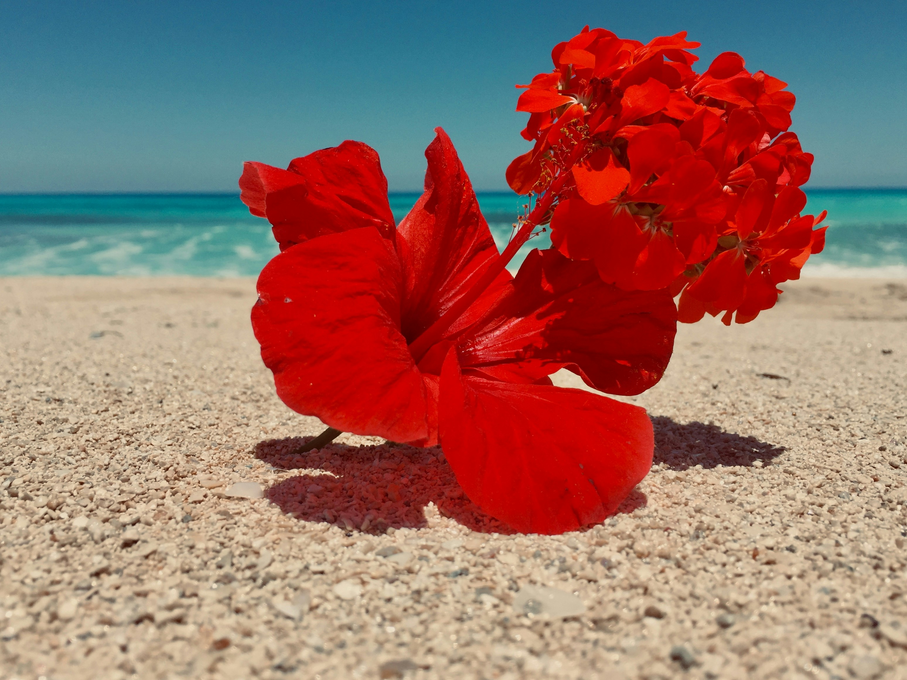 Red Flower On White Sand During Daytime Photo Free Plant Image On Unsplash