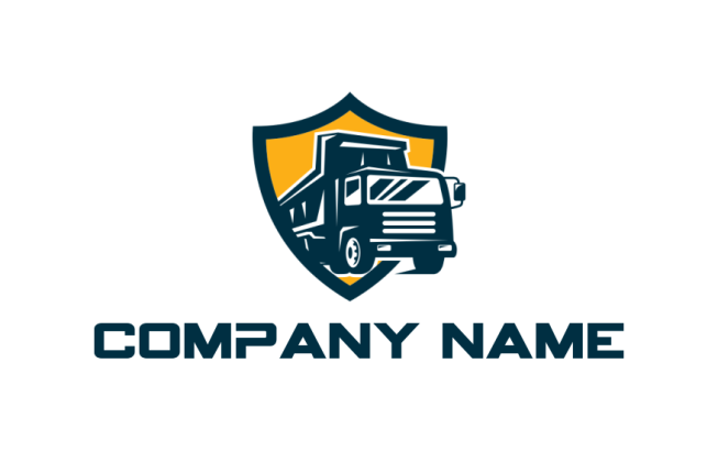 Abstract Dump Truck Coming Out From Shield Logo Template By Logodesign Net