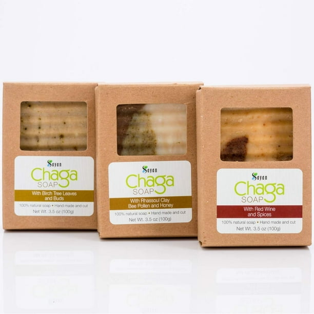 Sayan Siberian Chaga Mushroom Soaps Pack Of 3 Chaga With Birch Tree Leaves And Buds Chaga