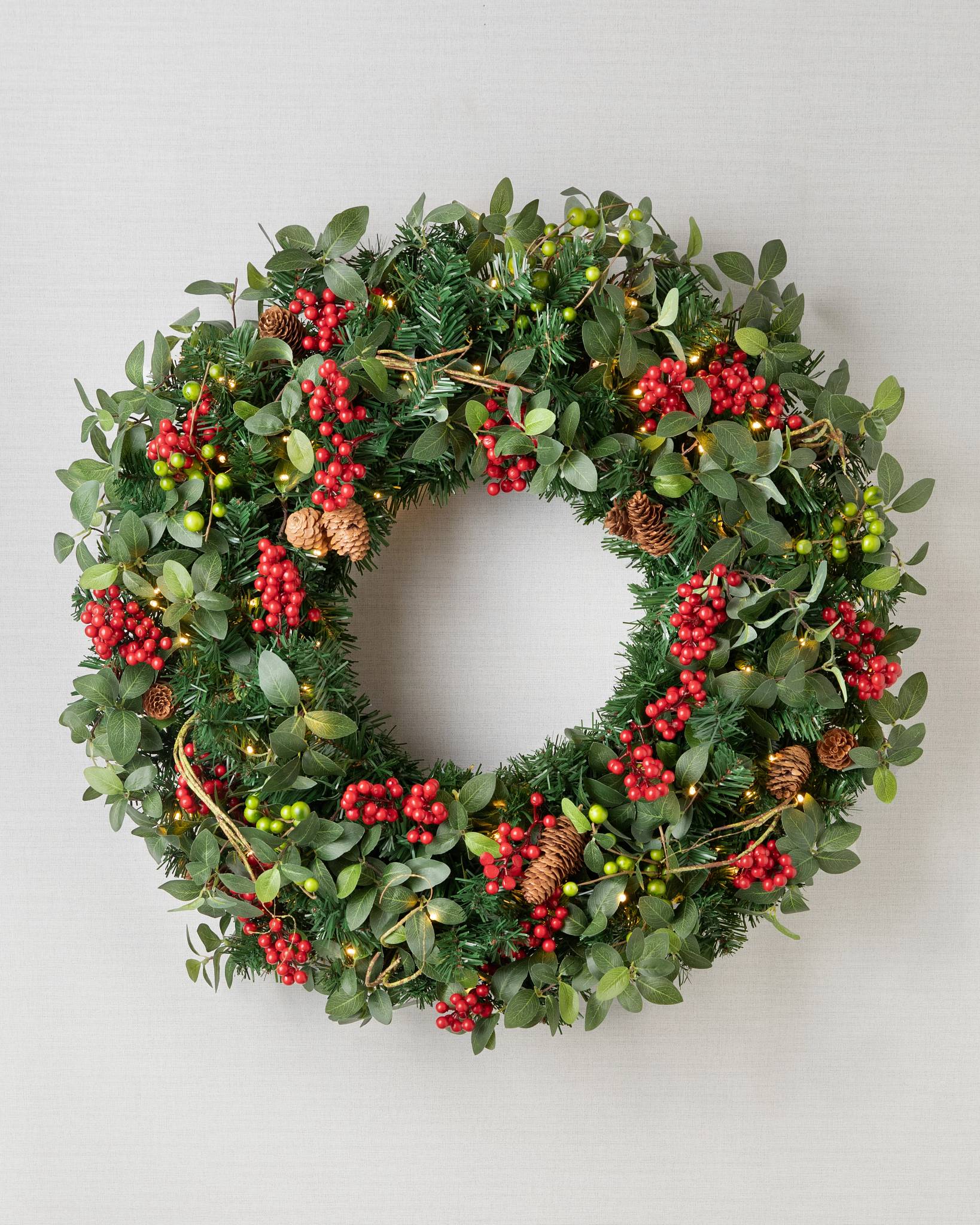 Holiday Living 30 In Led Warm White Pine Laurel With Red Berries Artificial Christmas Wreath Lowe S Canada