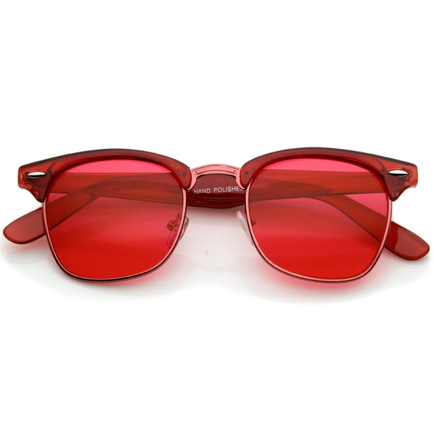 Sunglass La Colorful Transparent Horn Rimmed Tinted Lens Half Frame Sunglasses 49mm Red Red Red Walmart Com Walmart Com