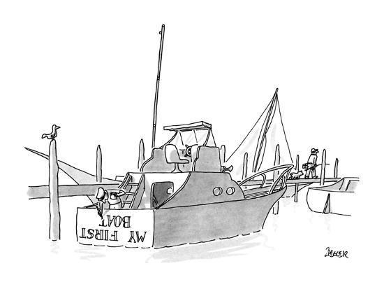 New Boat Owner Is Painting My First Boat On The Stern Of His Small Yacht New Yorker Cartoon Premium Giclee Print Jack Ziegler Art Com