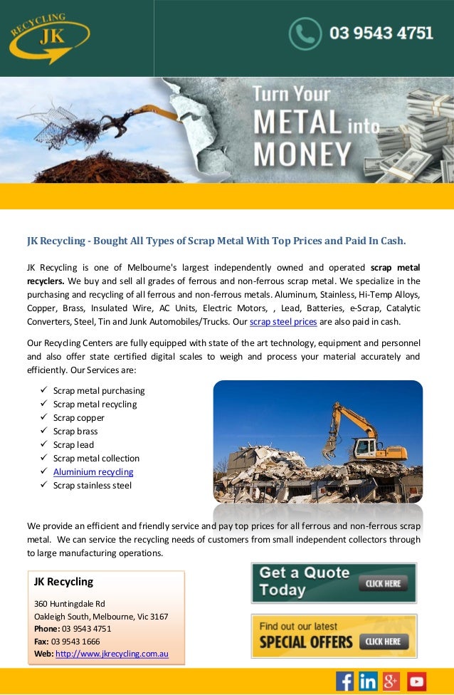 Jk Recycling Bought All Types Of Scrap Metal With Top Prices And Pa