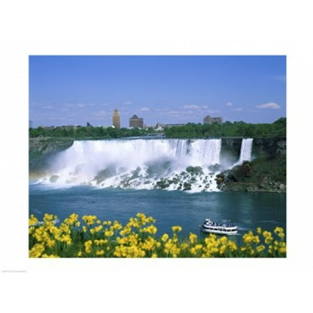 Flowers In Front Of A Waterfall American Falls Niagara Falls New York Usa Stretched Canvas 24 X 18 Walmart Com Walmart Com