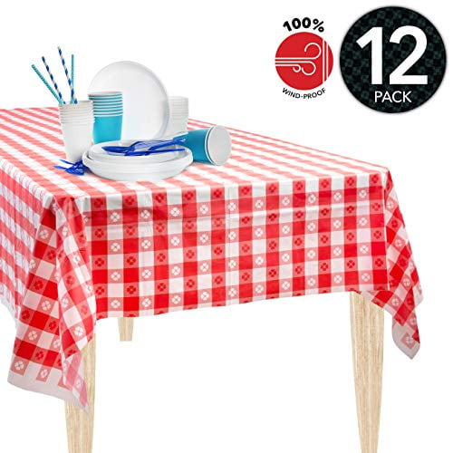 Amazon Com Red Gingham Checkered 12 Pack Premium Disposable Plastic Picnic Tablecloth 54 Inch X 108 Inch Rectangle Table Cover By Grandipity Kitchen Dining