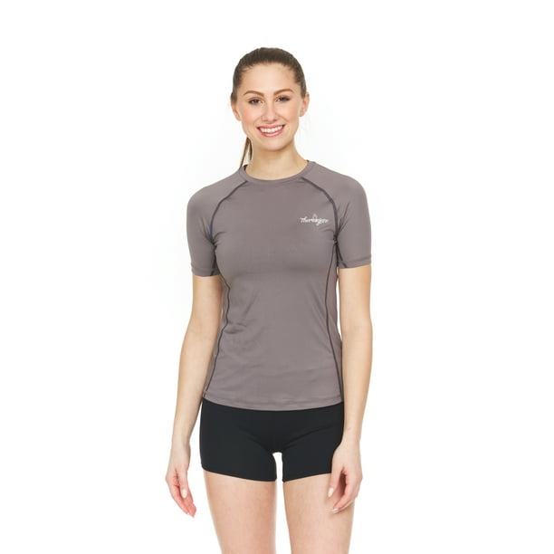 Thermajane Thermajane Women S Compression Short Sleeve T Shirt For Athletic Workout And Running Cool Dry Tops Xx Large Steel Grey Walmart Com Walmart Com