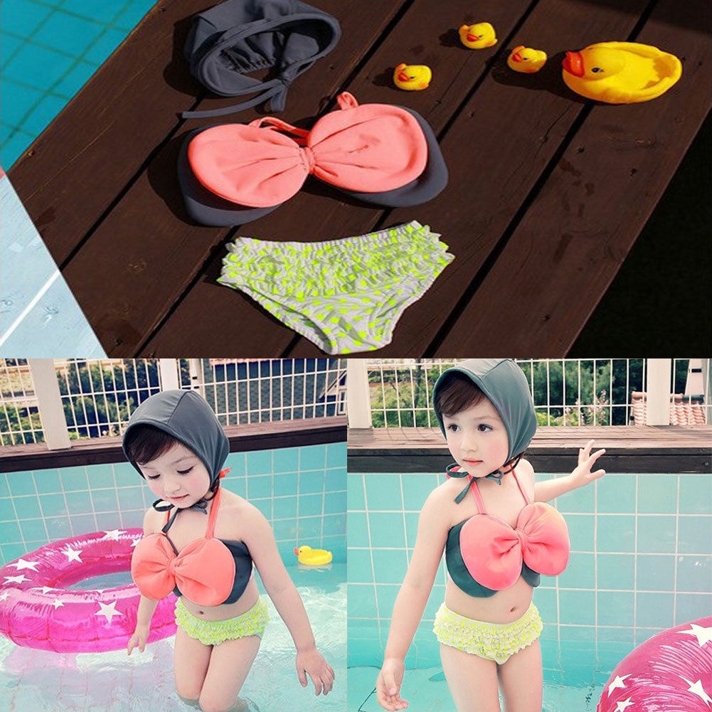Panda Superstore Lovely Bowknot Bikini With Cap For Girls Bathing Wear 5 8 Years Old 110 130cm