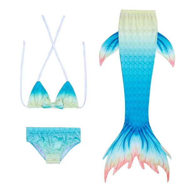 3pcs Girls Mermaid Tail Swimwear Mermaid Swimsuit Bathing Suit Princess Bikini Swimmable Costumes For 3 8 Years Old Walmart Com Walmart Com