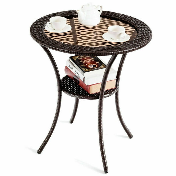 Gymax Round Rattan Wicker Coffee Table Glass Top Steel Frame Patio Furni W Lower Shelf Walmart Com Walmart Com