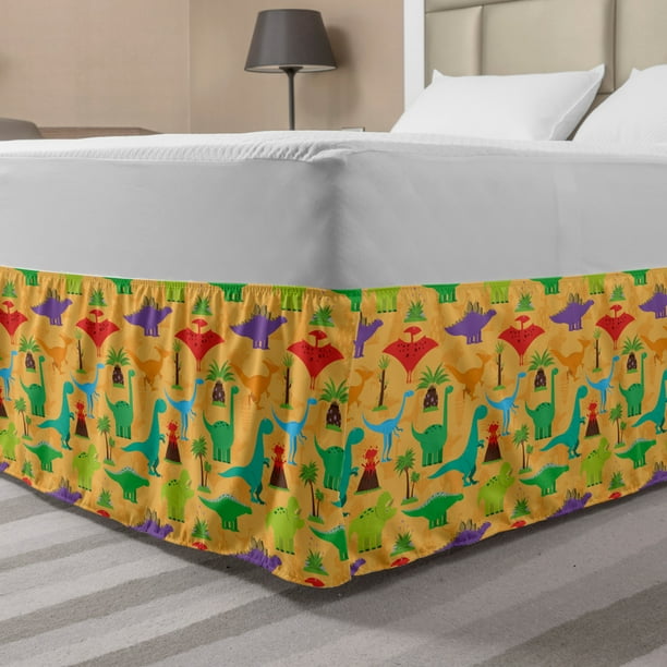 Fantasy Bed Skirt Various Kinds Of Dinosaurs Prehistoric Plants And Volcano Eruption Illustration Elastic Bedskirt Dust Ruffle Wrap Around For Bedding Decor 4 Sizes Multicolor By Ambesonne Walmart Com Walmart Com