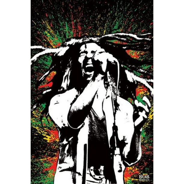 Bob Marley Dreadlocks Rasta Singing Paint Splash Neon Music Poster 24x36 Inch Walmart Com Walmart Com