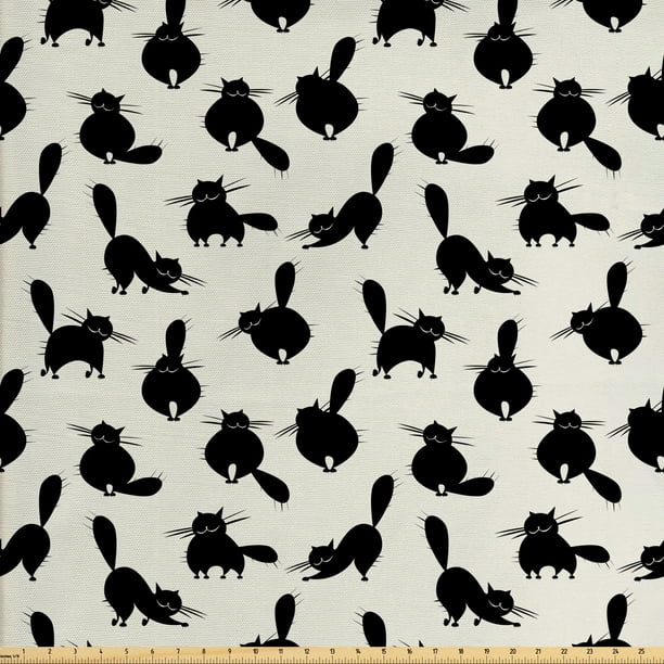 Amazon Com Ambesonne Cat Fabric By The Yard Funny House Pet Silhouettes With Various Poses Cartoon Style Abstract Animal Doodles Microfiber Fabric For Arts And Crafts Textiles Decor 2 Yards Beige Black